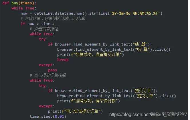 等待抢购时间,定时秒杀,这里我们定义一个buy函数