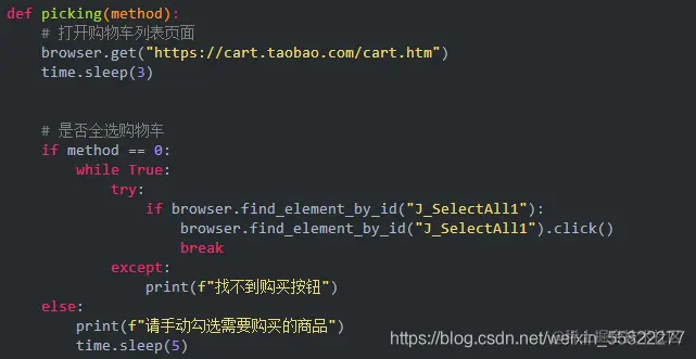 接下来就是勾选购物车中的商品,这里我们定义一个picking函数