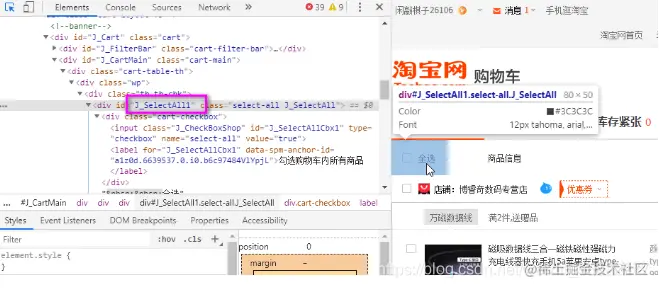 3.3.4 我们想要全选购物车中的商品,直接点击全选即可