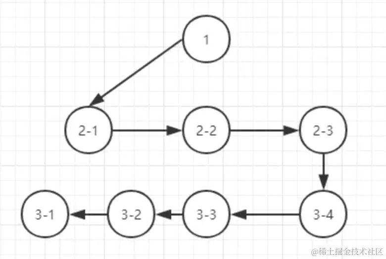 // 广度遍历, 创建一个执行队列, 当队列为空的时候则结束