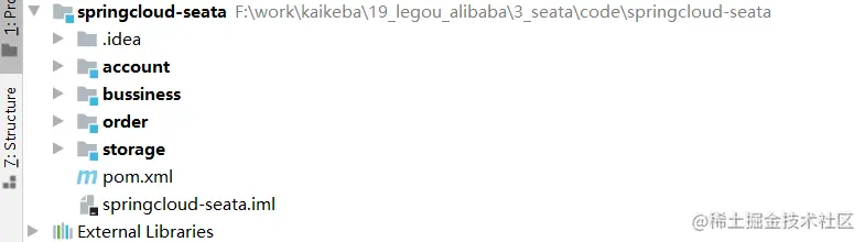 创建bussiness业务微服务,通过Feign调用库存微服务,和订单微服务,实现下单业务,分布式事务,也在此微服务进行控制。