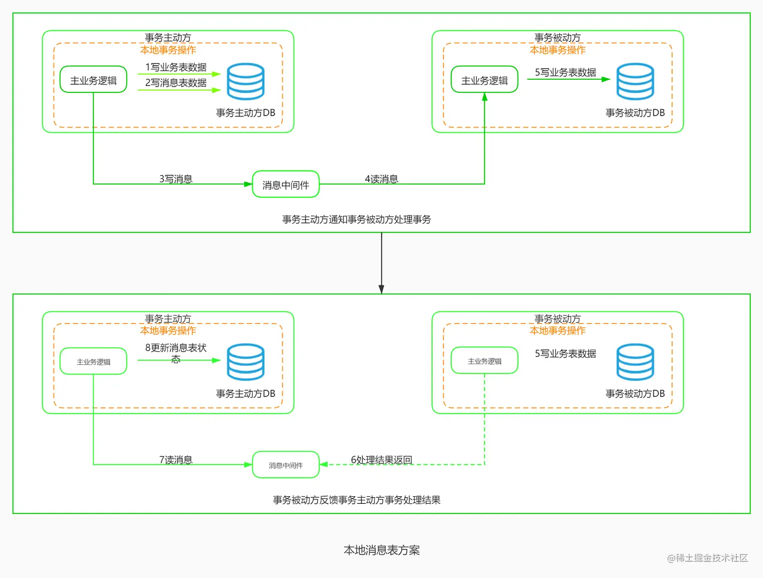 - 步骤3发送方开始执行本地事务逻辑。