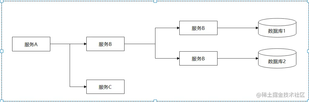 如果将上面两种场景结合,服务可以调用多个数据库资源,而一个服务又可以调用其他服务,完成一个业务操作。
