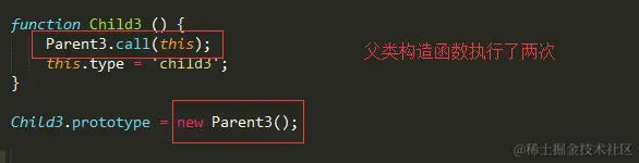 Parent3.call(this); //子类里执行父类构造函数