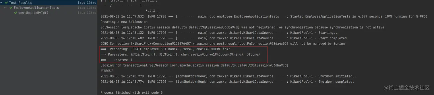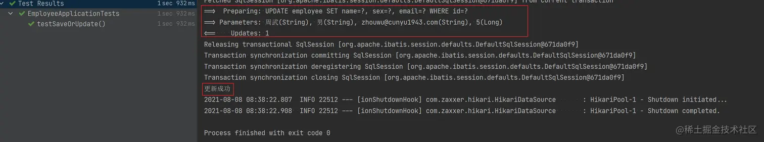 Assert.assertEquals(1, employeeMapper.updateById(employee));