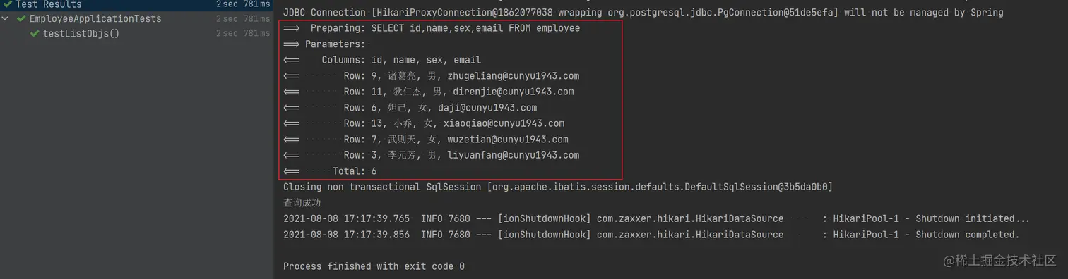 Assert.assertEquals(6, employeeService.listObjs().size());