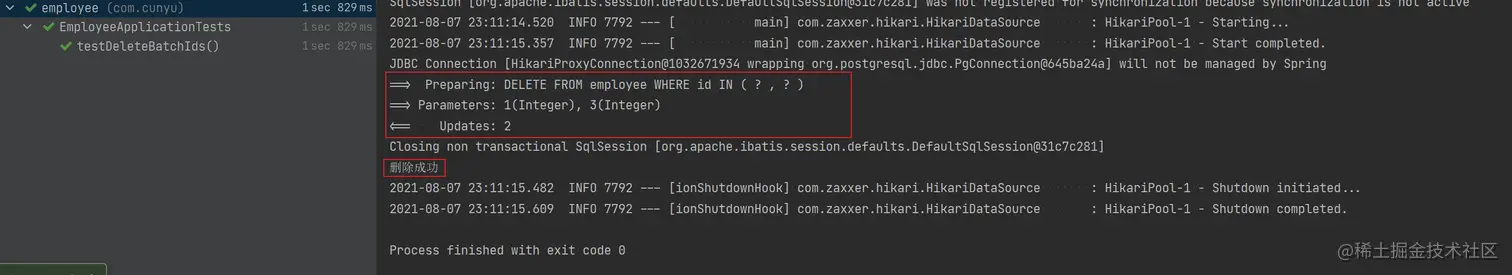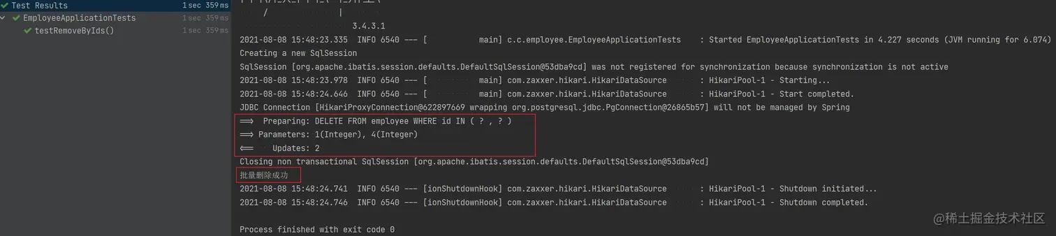 Assert.assertTrue(employeeService.removeByIds(ids));