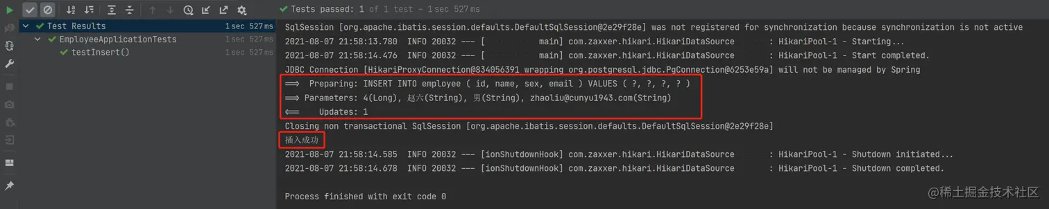 Assert.assertEquals(1, employeeMapper.insert(employee));