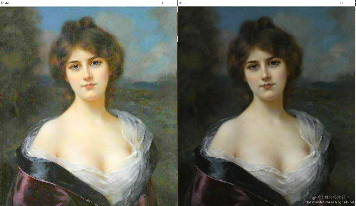 窗口下的均值,ε 是正则化参数。【因为在作者的算法中传进导向滤波器的导向图像与输入图像是一致的,所以公式看起来和何凯明的原公式有点不太一样,其实是一致的】