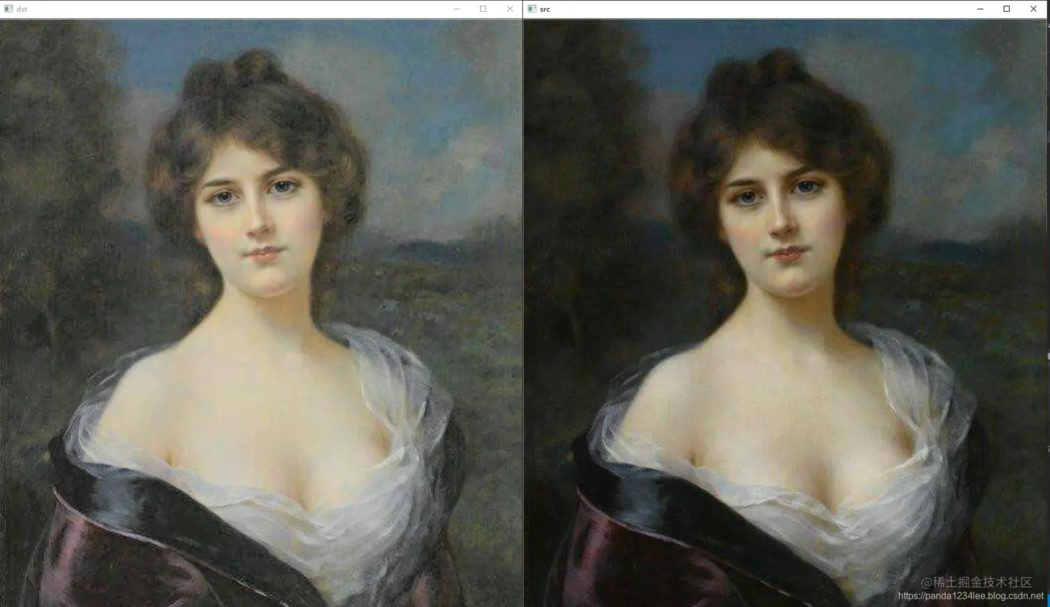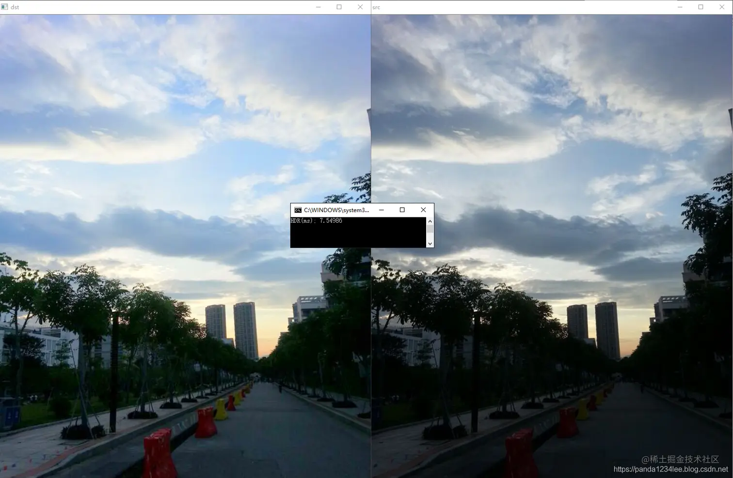 OpenCV 的版本执行(100次)时间平均为 48.14ms 左右