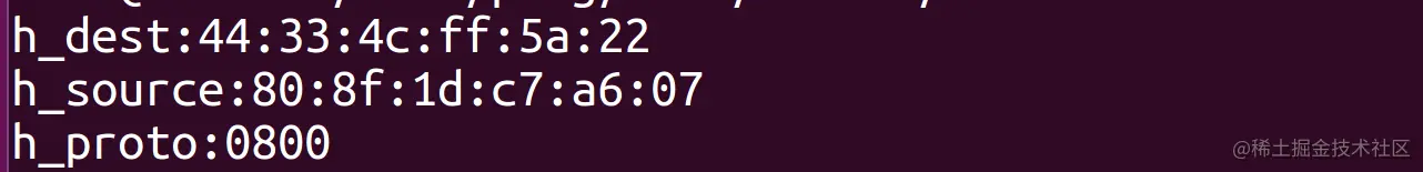 printf("h_proto:%04x\n",ntohs(ethh->h_proto));