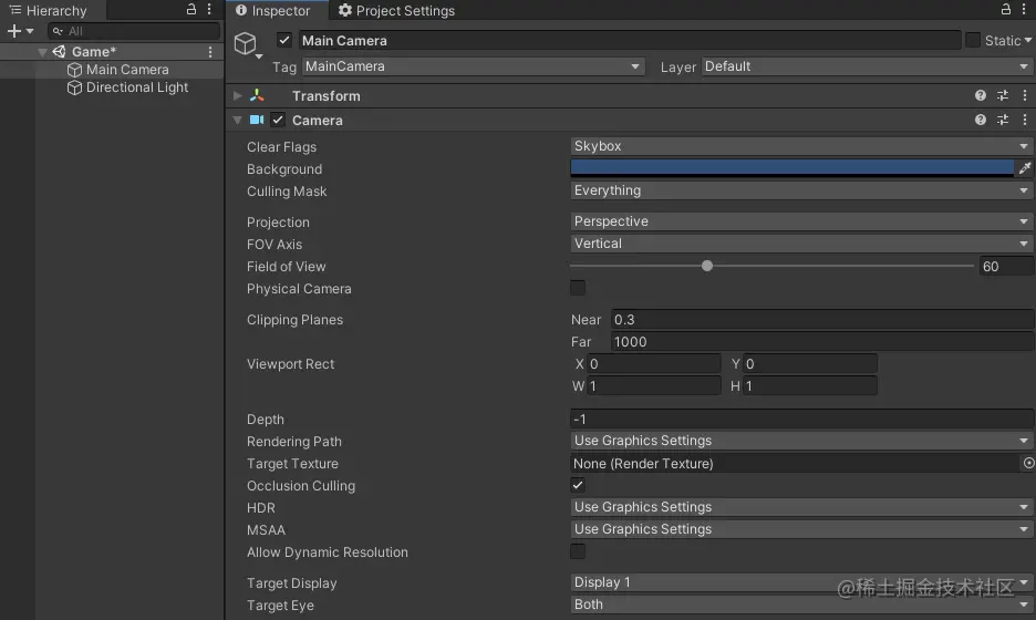 Unity 基础 之 Camera摄像机属性介绍