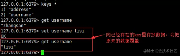 功能:将字符串值 value 设置到 key 中,如果key已存在,后放的值会把前放的值覆盖掉。