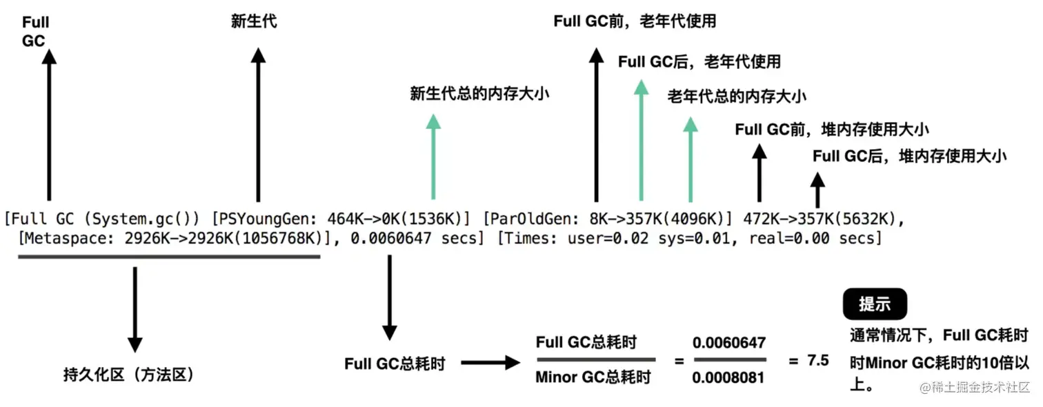 无论是Minor GC,还是Full GC,都会产生停顿现象,即Stop-The-World。Minor GC停顿时间较短,而Full GC耗时较长将导致长时间停顿、系统无响应,极大影响系统的性能。因此,Full GC日志的监控和性能分析在性能优化中极为重要。