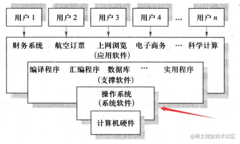 操作系统处于计算机硬件和软件层的交汇处,操作系统本身是一种软件,它负责管理所有在该计算机系统下的硬件资源,并且向上提供抽象接口。