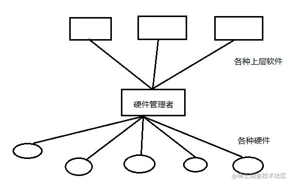 - 最重要的是如果没有一个对硬件资源的统一管理者,那么每一个商业软件团队都要将大多数的硬件协议控制编写一遍,这在成本上是不可接受的。