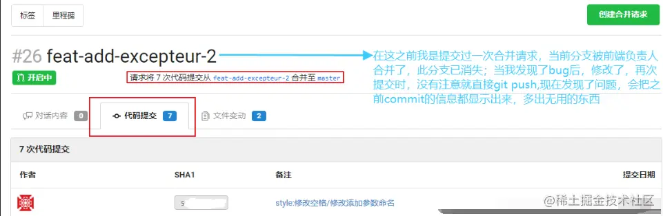 当前分支提交过一次合并后,被其他人合并了分支,发现bug修复后,再次提交,多出无用的commit ?