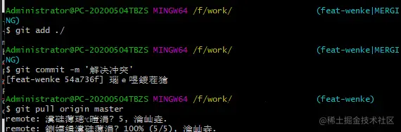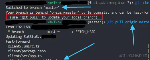 feat-wenke是本地分支,需要拉取远程更新后的master主分支