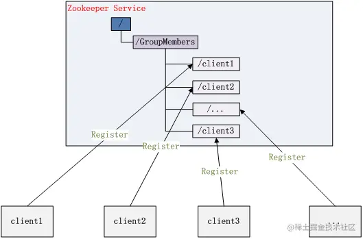 所有机器约定在父目录GroupMembers下创建临时目录节点,然后监听父目录节点的子节点变化消息。一旦有机器挂掉,该机器与 zookeeper的连接断开,其所创建的临时目录节点被删除,所有其他机器都收到通知:某个兄弟目录被删除,于是,所有人都知道了。新机器加入 也是类似,所有机器收到通知:新兄弟目录加入,highcount又有了