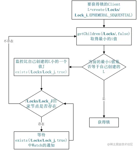 对于第二类, /distribute_lock 已经预先存在,所有客户端在它下面创建临时顺序编号目录节点,和选master一样,编号最小的获得锁,用完删除,依次方便。