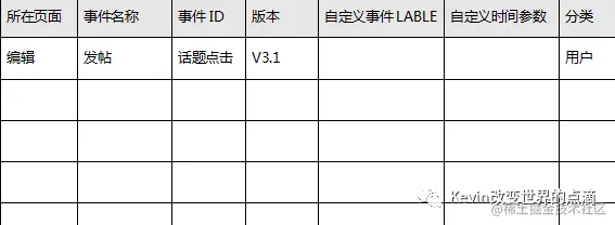 这里可以简单举例比如以UGC模块,以发帖事件来进行说明,该页面所能进行的操作都需要将其规则化,以事件名称来确定每个操作的名称,可以满足将其规则化的目的。