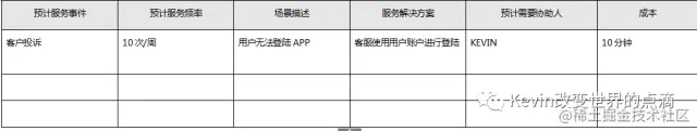 这里首先要说明的是关于成本建议做一个标准,如果是按照价钱就统一为钱;如果为时间就统一为时间;预知服务频率需要PM进行数据分析,给予一个恰当的范围。