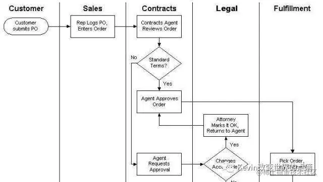 当然这里移动端流程指向的用户相对单一,当然也有按照用户角色来进行区分的流程,常见的就是在ERP或者一些后台产品设计中,PM需要根据不同的角色将相应流程进行绘制。