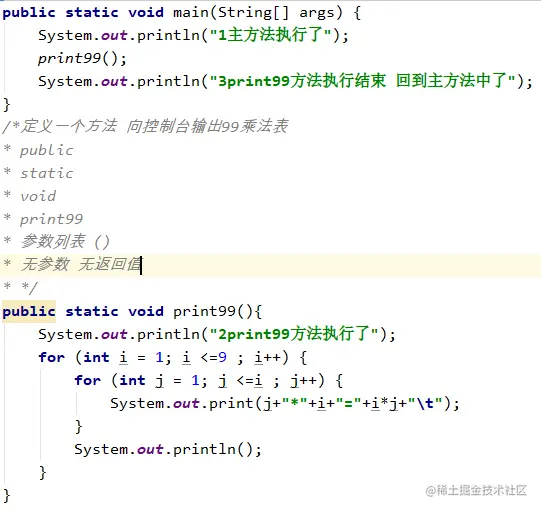 1、定义一个方法 向控制台输出99乘法表