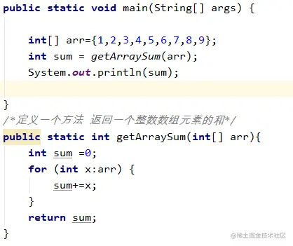 5、定义一个方法 返回一个整数数组的元素和