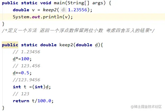 4、定义一个方法 返回一个浮点数保留两位小数 考虑四舍五入的结果