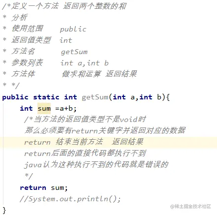 实现功能:自定义一个方法定义一个方法用于返回两个整数的和。