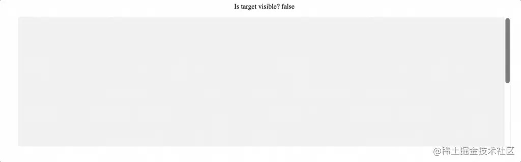 这个例子的代码可能是这样的:我们有一个假的段落,只是在我们的视口中占据了空间,我们的目标元素,然后是一个打印语句,打印我们元素的可见性。