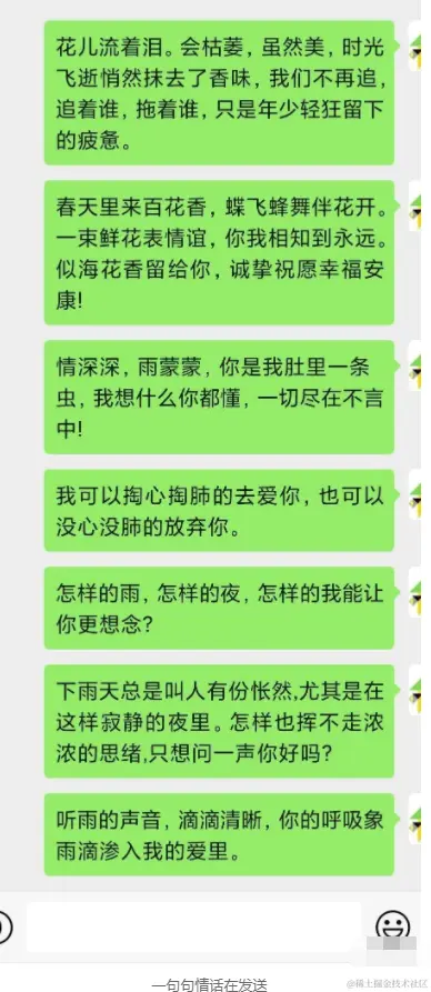 突然在想要不要在每句情话前面加上编号,这样她就能一下子知道我发了多少条,要不然她绝对不相信有20000条!