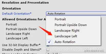 - Unity项目导出的时候设置屏幕方向