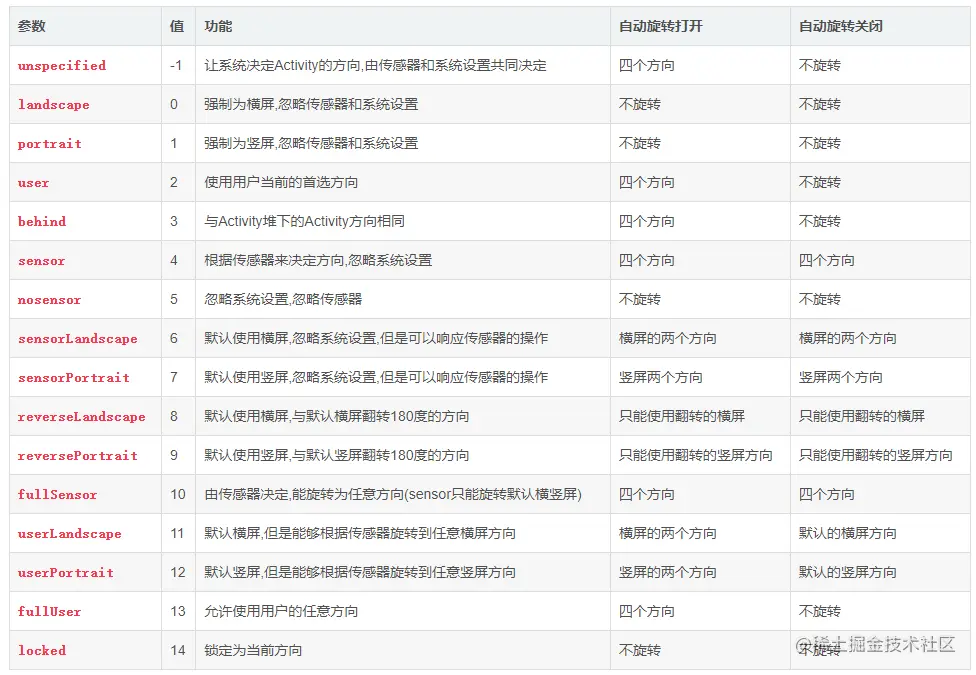 附赠 Android的屏幕方向列表: