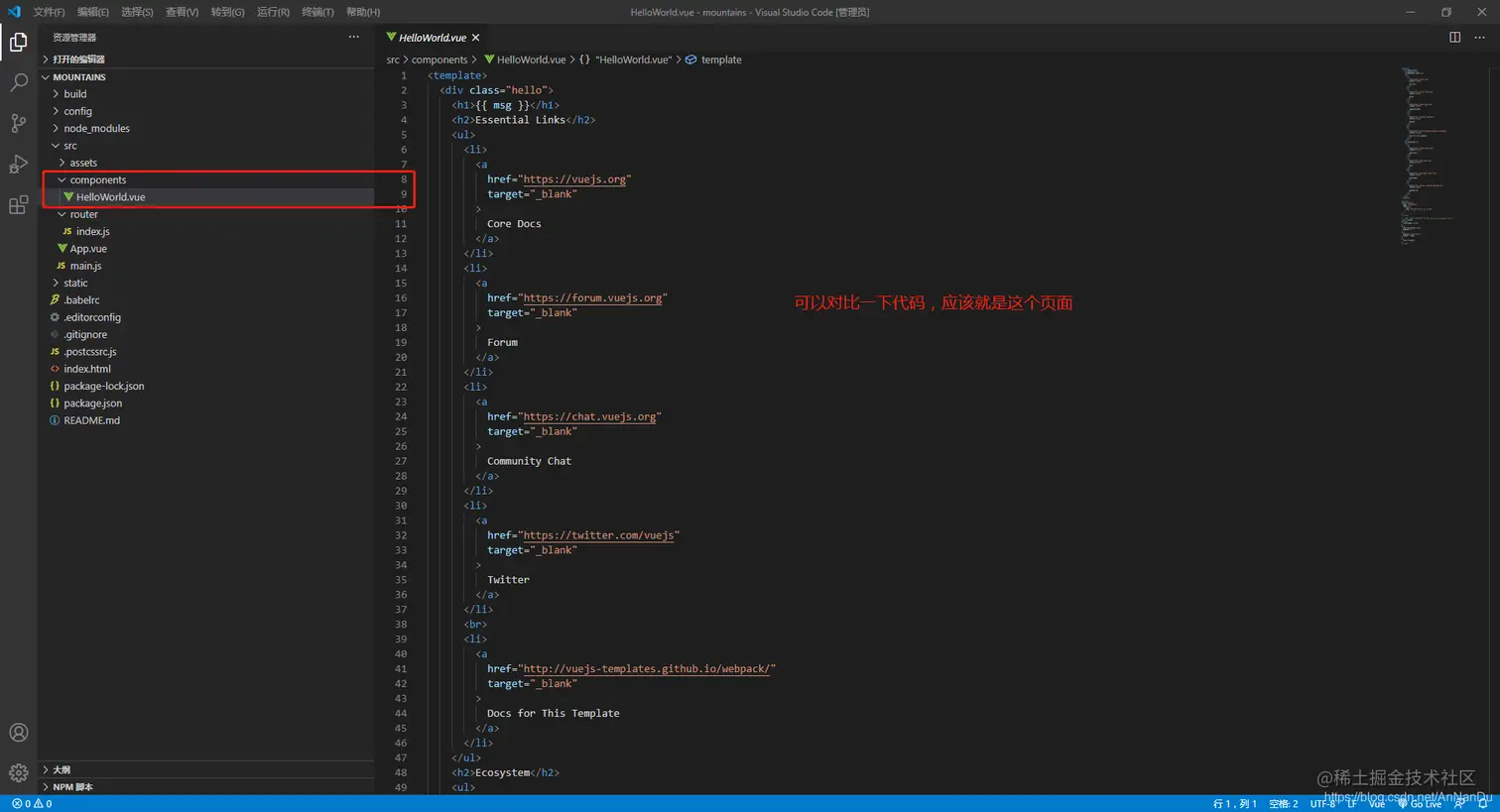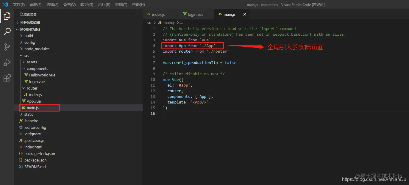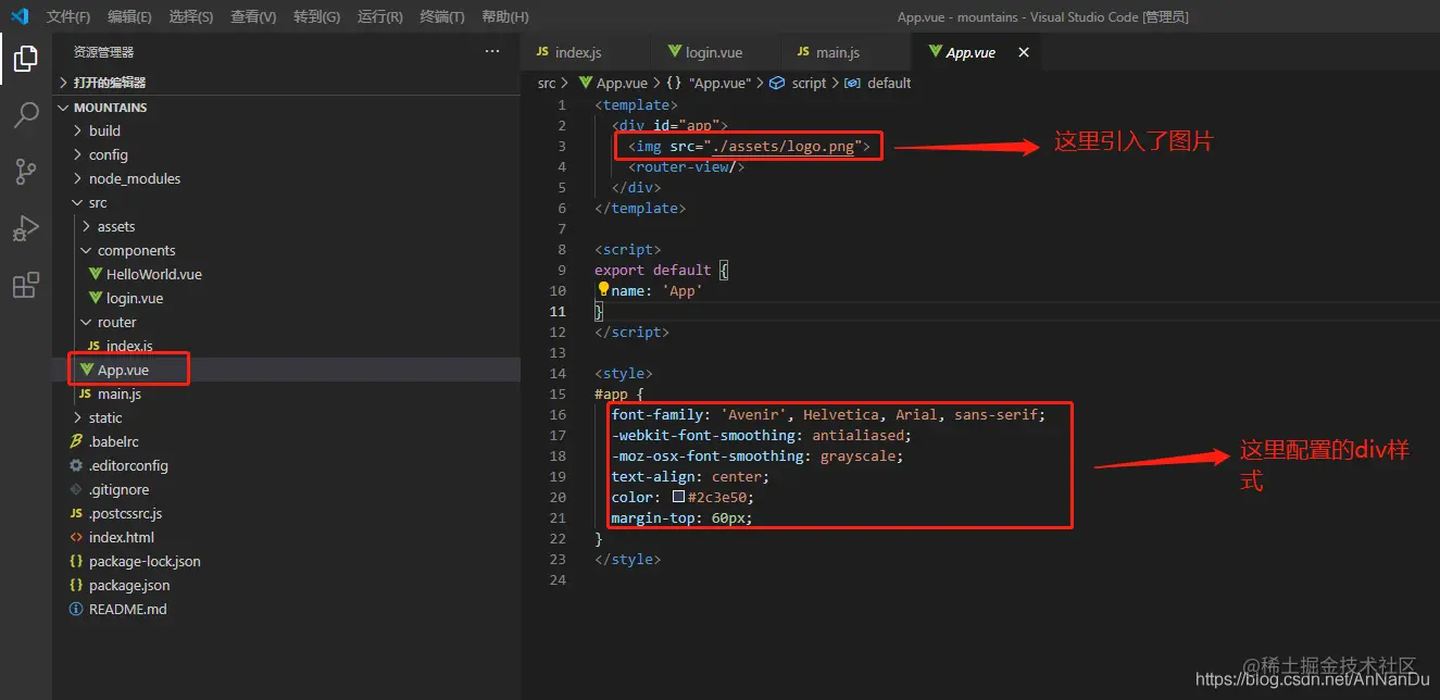根据代码找到了App.vue页面,打开它