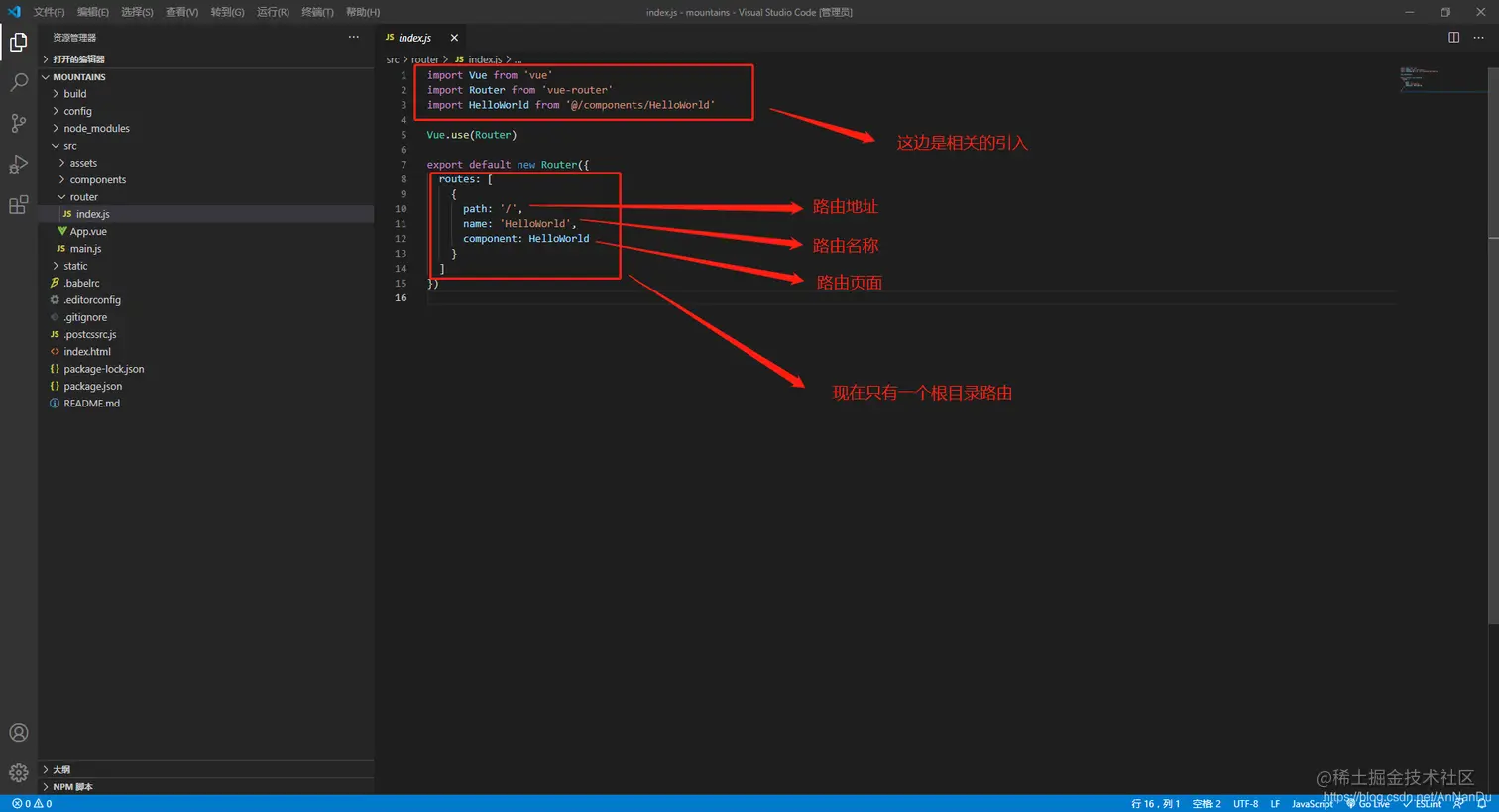 找到router文件下的index.js文件,这个是服务路由的配置文件