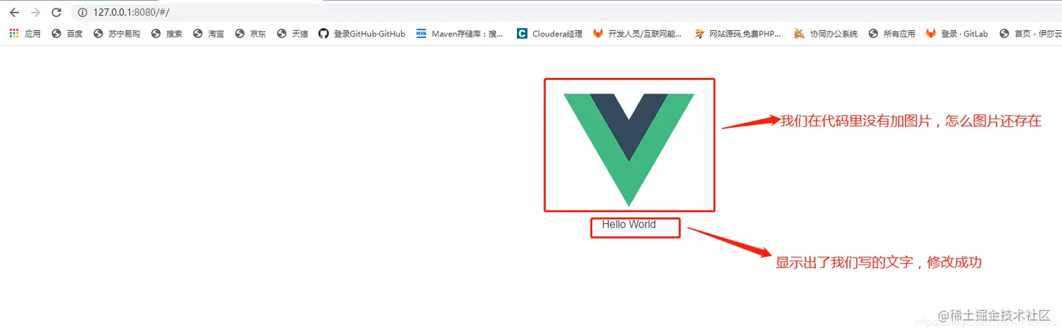 可以看到,虽然我们的login页面加载了出来,但是有一个图片不是我们写的内容,这个就是vue的全局引入页面了