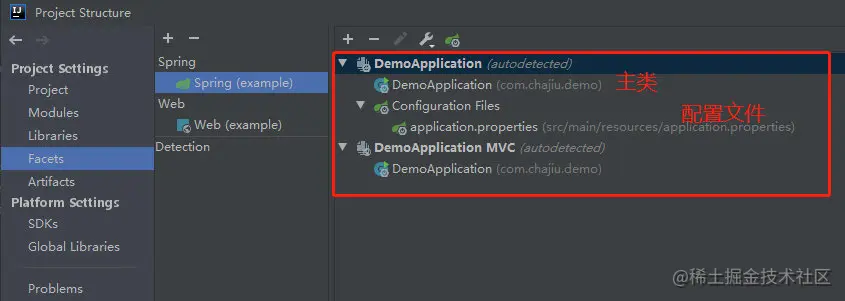 Spring 的主类和配置文件是Spring的一些配置,但是不告诉IDEA在哪他自己是不知道在哪的,所以在facet中要写清楚在什么地方(默认会配好)。