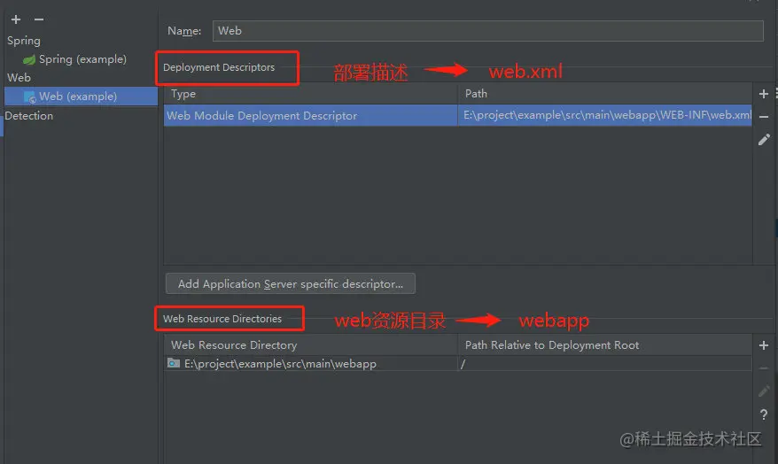 Facet声明了我们每个模块使用技术的配置(注意和moduel结合区分理解),最重要的是在这里配好web.xml和web资源目录的位置。