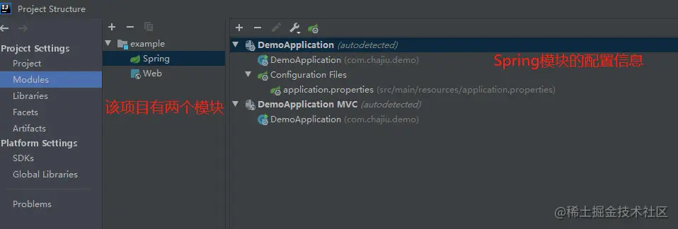 一个项目可以有一个或多个模块,比如Spring,Web。这些模块都是现有的,可用的。