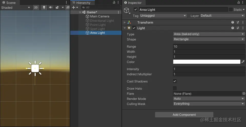 - Area Lights 区域光 --创造灯光Titus烘焙时使用---无法用于实时关照