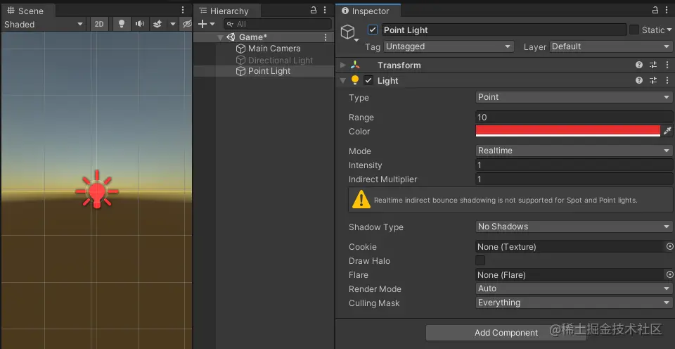 Unity 中光照的工作方式类似于光在现实世界中的情况。Unity 使用详细的光线工作模型来获得更逼真的结果,并使用简化模型来获得更具风格化的结果。