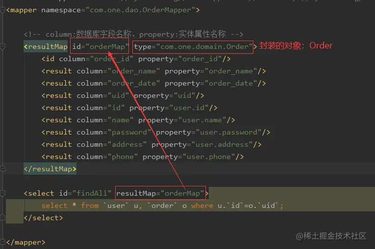 - @One:实现一对一结果集封装
