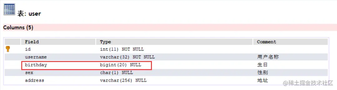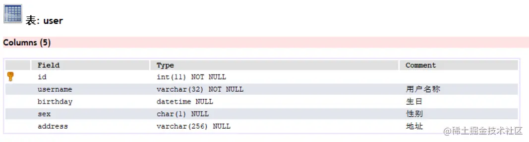2.2 创建数据库表 user & 实体类 User