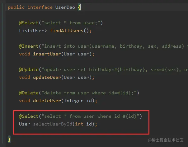select id, username, sex from user where id = #{id};