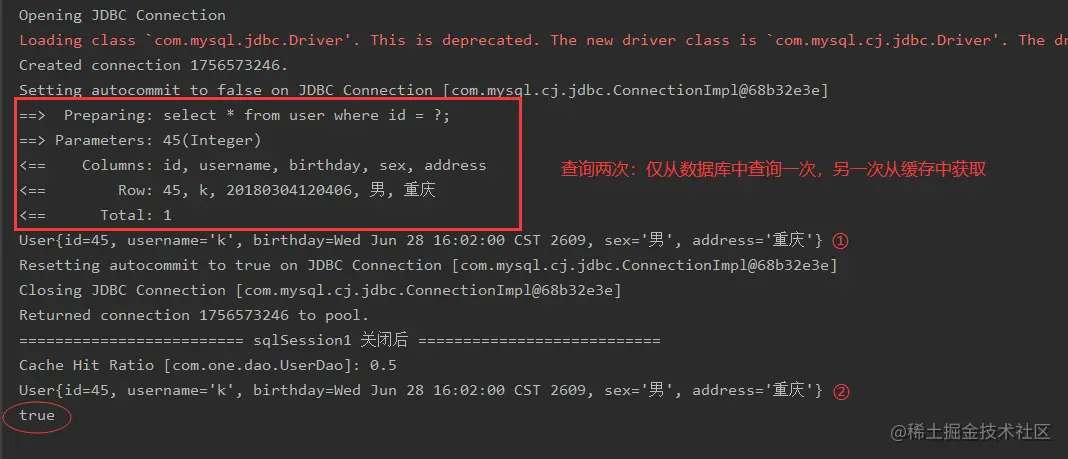 提示:二级缓存是事务性的。这意味着,当 SqlSession 完成并提交时,或是完成并回滚,但没有执行 flushCache=true 的 insert/delete/update 语句时,缓存会获得更新。二级缓存在实际开发中基本不会使用,在一些笔试题会出现。