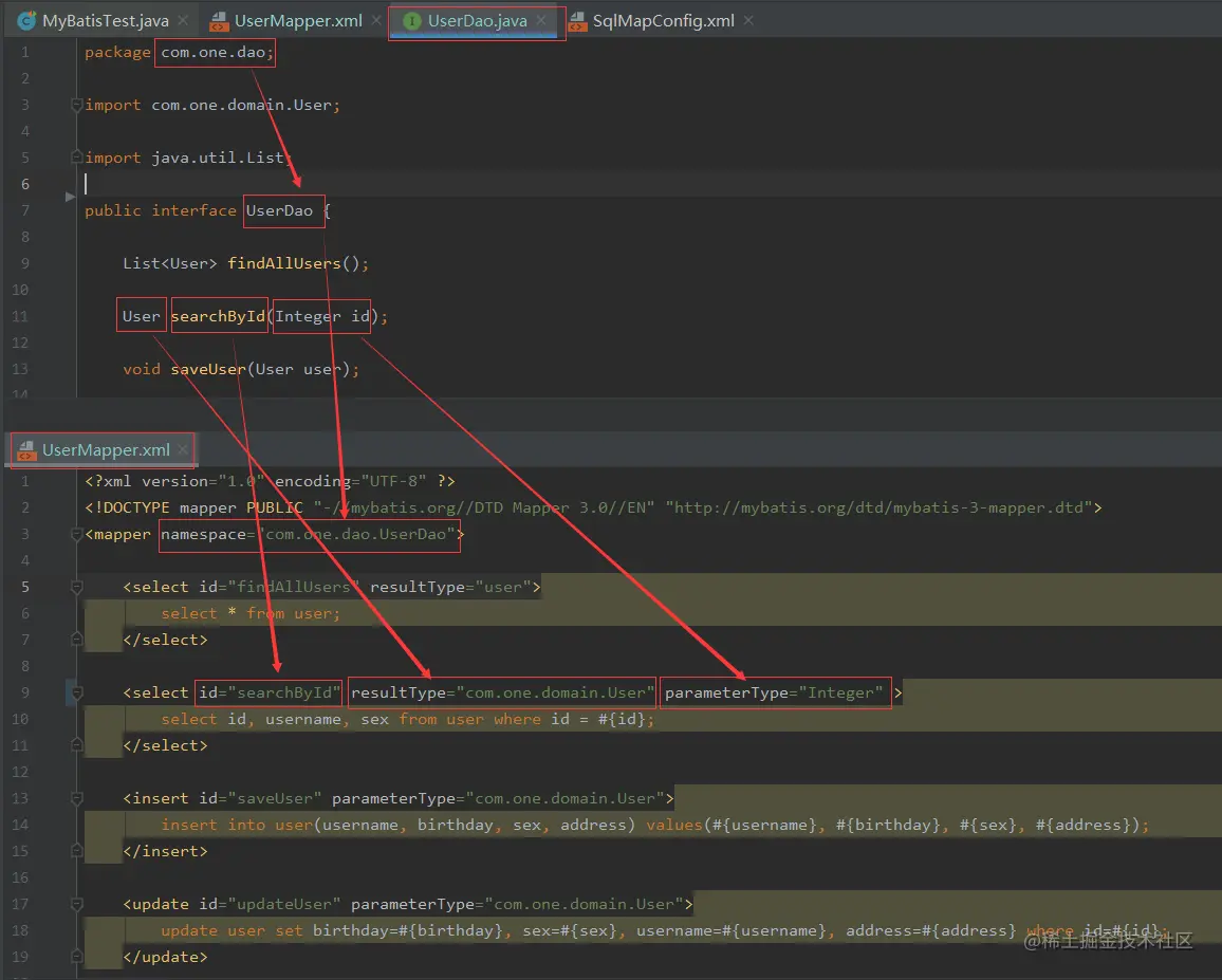<!--namespace: UserMapper.xml实现的接口UserDao的全限定名-->