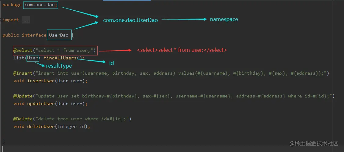 <mapper namespace="com.one.dao.UserDao">