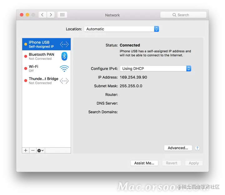 二、通过USB:将iPhone通过USB连上Mac,在Mac上打开System Preferences,进入Network,然后选择iPhone USB;